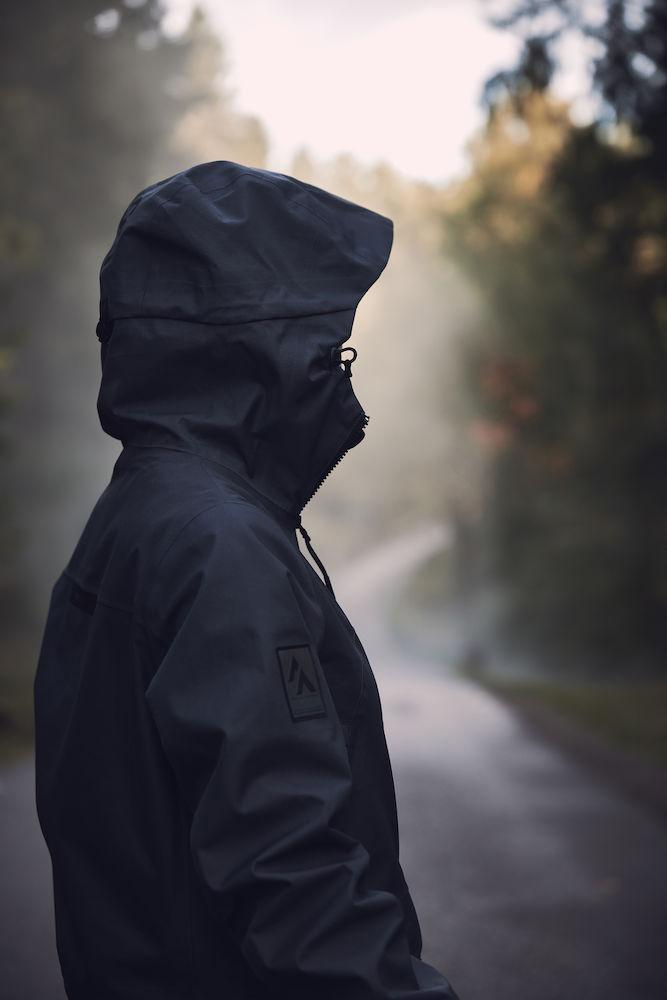 3-Lagen-Shelljacke mit getapten Nähten, Achselbelüftung, verstellbarer Kapuze und Ärmeltasche.